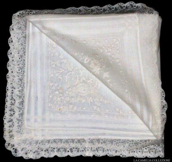 FAZZOLETTI – antichi, da nozze e da gran ballo » fazzoletto 19 -punto pieno e punto imbottito con pizzo valencienne – la camelia collezioni