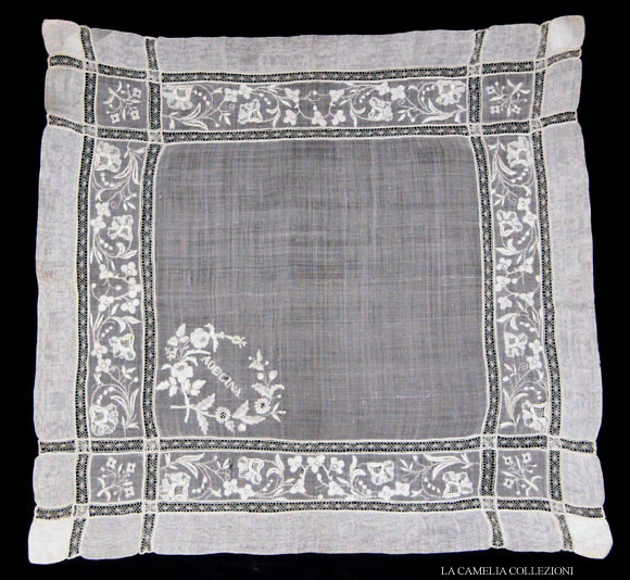 FAZZOLETTI – antichi, da nozze e da gran ballo » fazzoletto 23 – punto pieno lavorazione a lente – la camelia collezioni