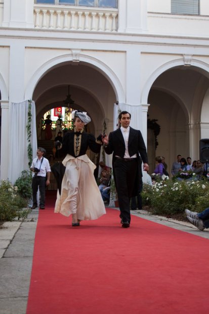 Sfilata “Musical e Moda” dall’800 ai giorni nostri » Vestiti 1800 – bianco con giacchina nera con cavaliere 1