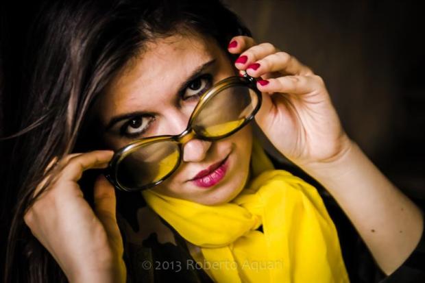 giacca mimetica autentica anni 70 con foulard giallo limone e occhiale autentico anni 70