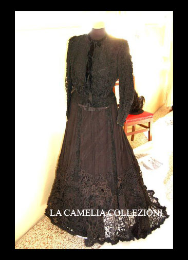 VESTITI ANTICHI E ACCESSORI » abito in macramè su base chiffon fine 1800 – moda femminile 1800 – la camelia collezioni