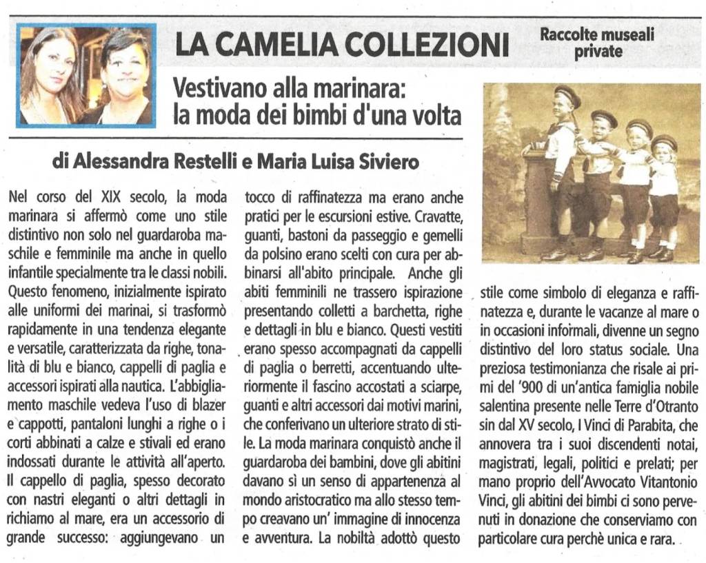 Questa settimana il tema della nostra rubrica (n.26/2025) sul giornale ” La Lomellina” è dedicato alla moda marinara dei bimbi tra l’800 e il ‘900