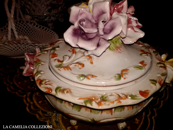 ceramica bassano – cventrotavola con coperchio e rosa – la camelia collezioni
