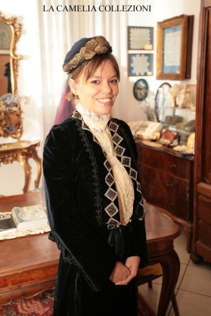 Abito autentico anni 50 Sartoria Bacchella – Via del Popolo (Vigevano) : nel 1956 ha vinto il primo premio del veglione al Teatro Cagnoni