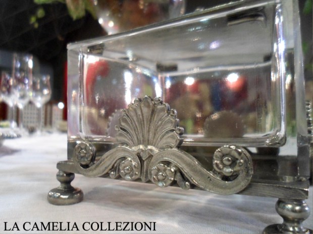 Tovagliato & servizi per la tavola » argenteria – formaggiera in vetro e argento – noleggio argenteria e posateria – la camelia collezioni