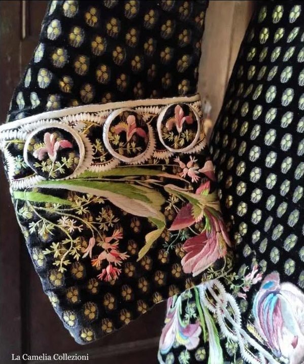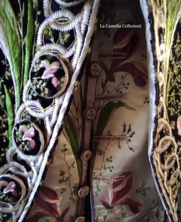 Intervento conservativo su abito di Gala Settecentesco composto da marsina, gilét in seta con ricami e pantalone in tessuto operato attualmente collocato presso l’ala Museale della dimora storica privata Villa Melzi d’Eril – Bellagio (Como).