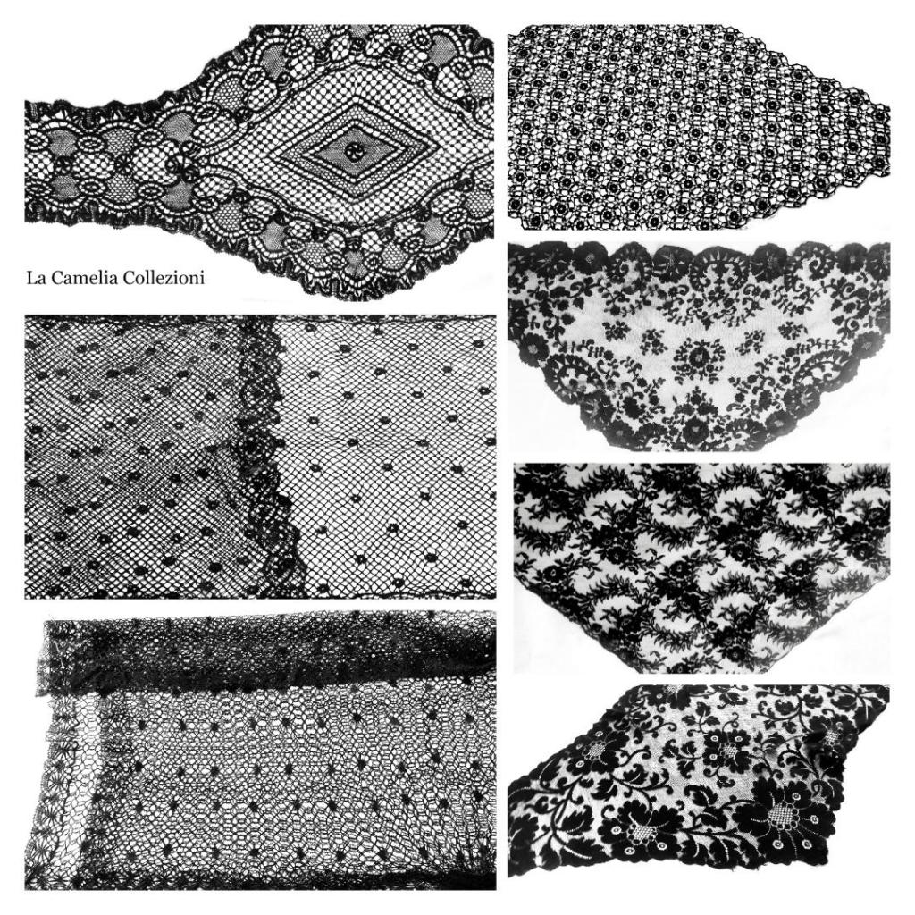 La Collezione dispone di 13 tipologie di veli neri in merletto-pizzo-trine sia manuale che meccanico (alcune tipologie come microfilet – bruges – burano – apliqueรจ bruxelles – blonde e chantilly)ย con un settore particolare di ricerche e raccolte di mantiglie spagnole, cosiddette madrilene, per le udienze davanti al Santo Padre.ย Un tempo erano utilizzati dalle donne potenti (facenti parte di corredi dotali) ora invece sono introvabili o solo per pochi.