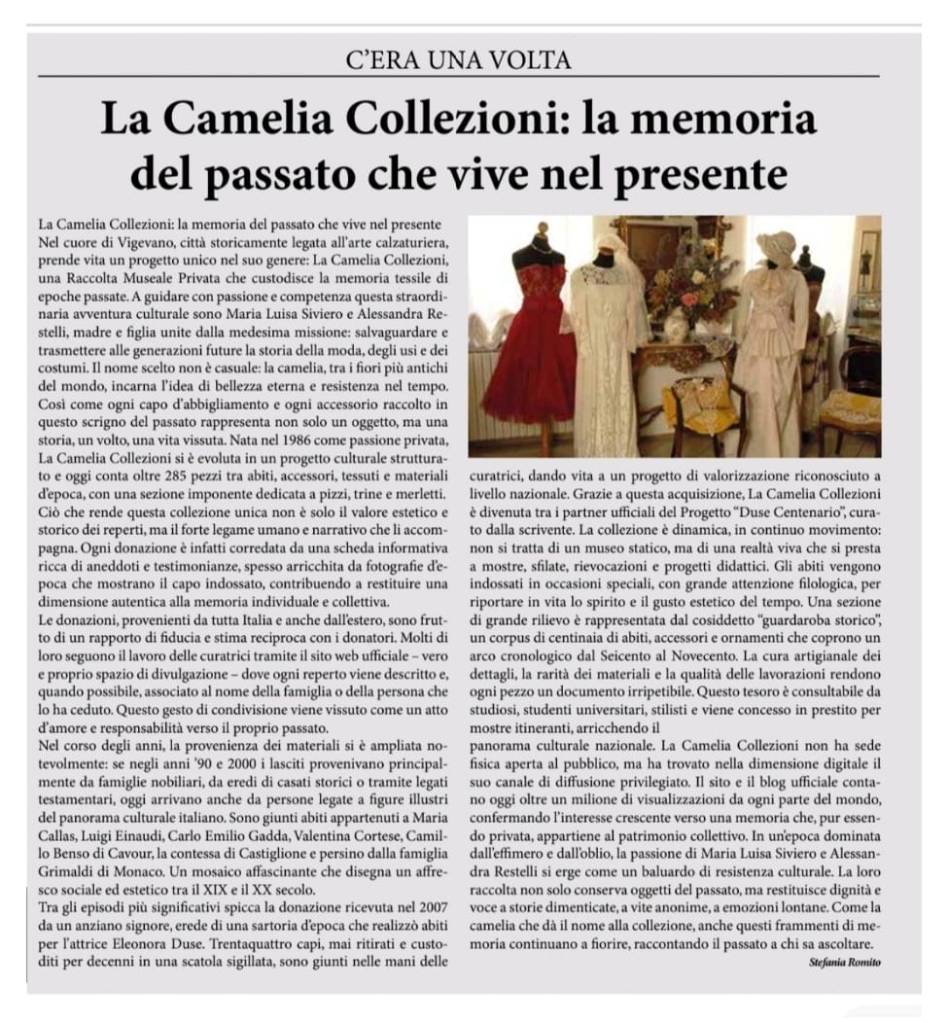 Pubblicato da "La Camelia Collezioni" Vigevano in ABITI ANTICHI e ACCESSORI, DONAZIONI AL MUSEO, PUBBLICAZIONI il 7 giugno 2025