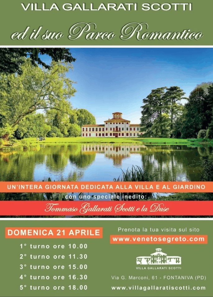 Un omaggio speciale che ha concluso l’esposizione di una parte degli abiti – presenti in Collezione e ricevuti per donazione – appartenuti a Eleonora Duse ospitati presso la Villa Gallarati Scotti di Fontaniva (Padova); per l’anno della commemorazione sono state promosse visite guidate che hanno accompagnato e dato vita a questi capi della Collezione dove si è raccontato il profondo legame artistico tra Tommaso Gallarati Scotti e la Duse.
