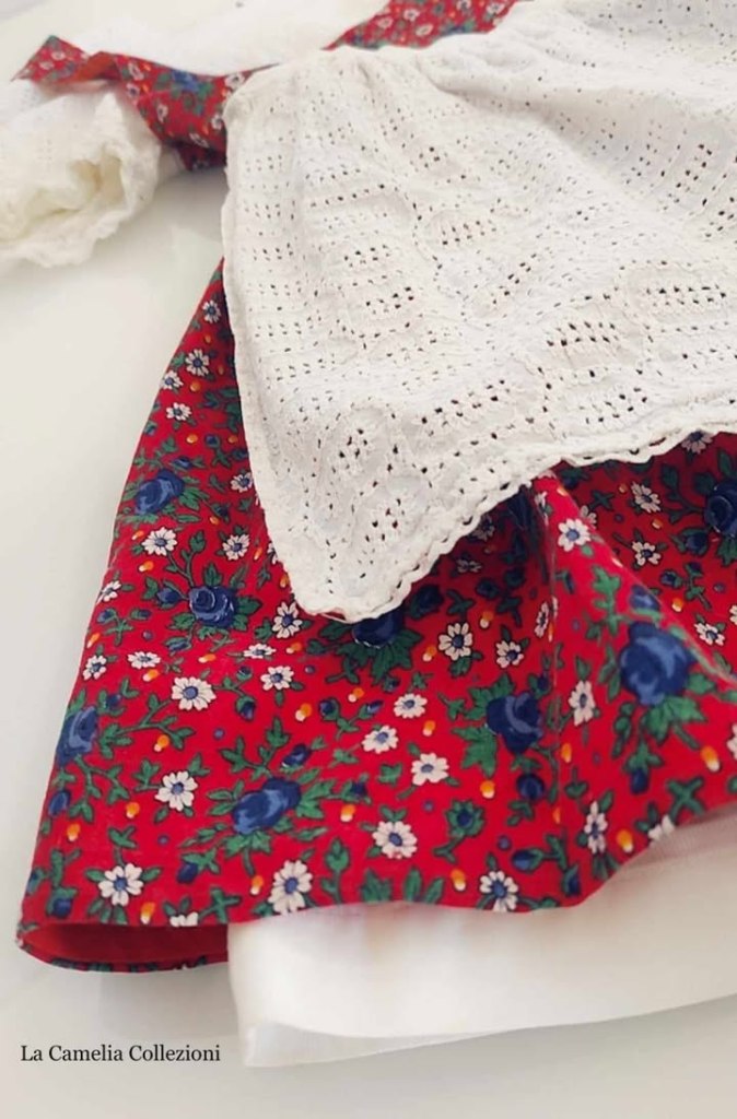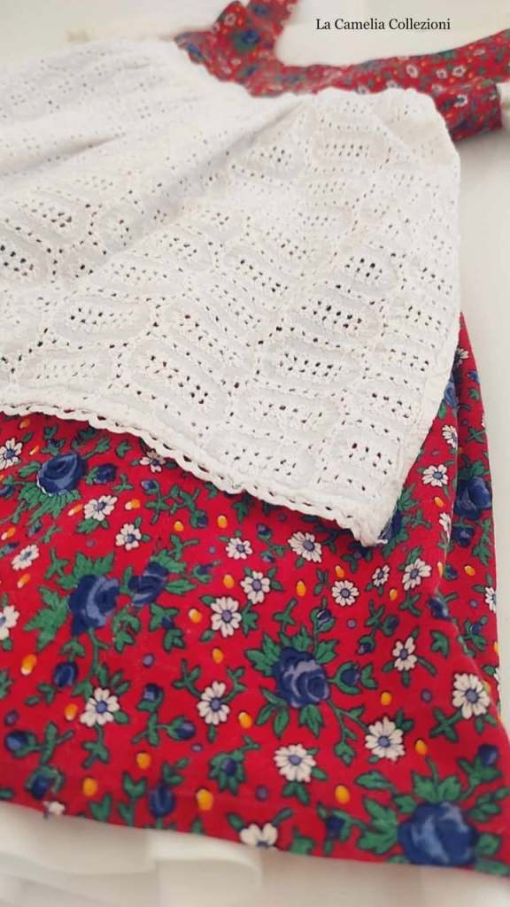 Preziosissime sono le lettere che accompagnano le donazioni alle nostre Raccolte dove in ogni frase sono racchiuse emozioni velate; ringraziamo la sig.ra 𝑀𝑜𝑛𝑖𝑐𝑎 𝑃𝑜𝑛𝑧𝑒𝑡𝑡𝑜 ( rif. 32/2025 – 1 di 4 parti ) per questo grazioso abitino stile tirolese con grembiulino in pizzo Sangallo dei primi anni ’70 di sua sorella.