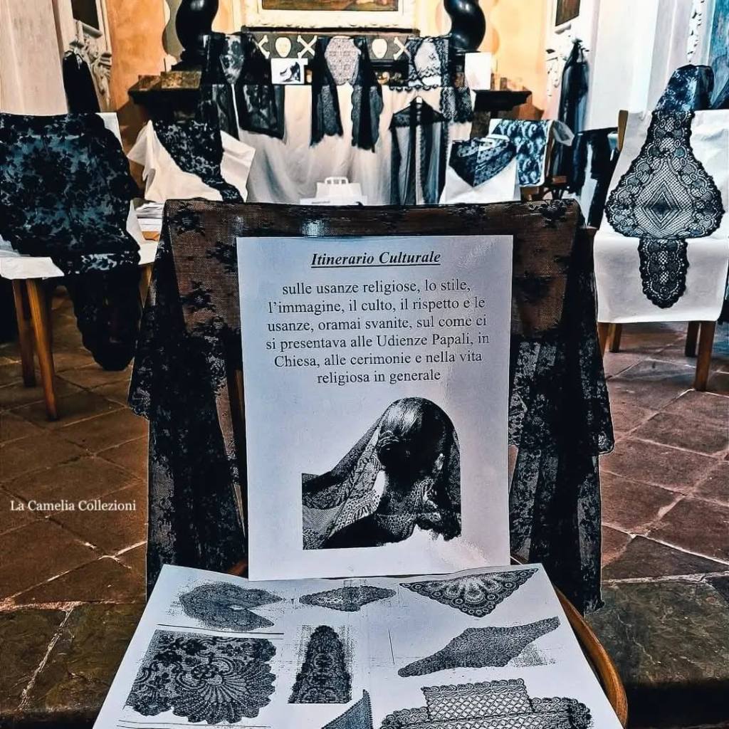 Il nostro impegno per la conservazione e la promozione culturale dei veli neri ( religiosi, cerimoniali e per le Udienze Papali ) ha raggiunto quasi 700 pezzi unici costituendo una rara Collezione – dal secolo 800 – non solo sul territorio Nazionale.