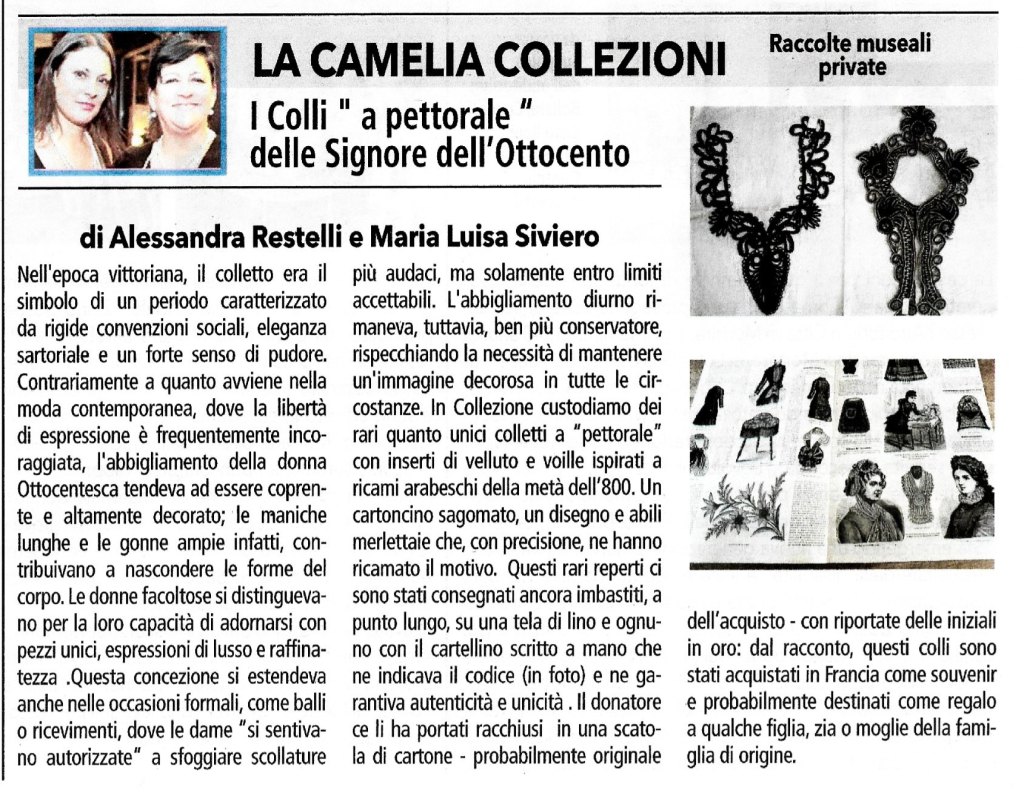 Questa settimana il tema della nostra rubrica (n.45/2025) sul giornale ” La Lomellina” è dedicato ai colli ” a pettorale” , adorno prezioso riservato alle Signore borghesi e aristocratiche dell’800