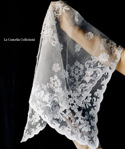 VELI NUZIALI – triangolare, in tulle ricamato, metà sec. 800
